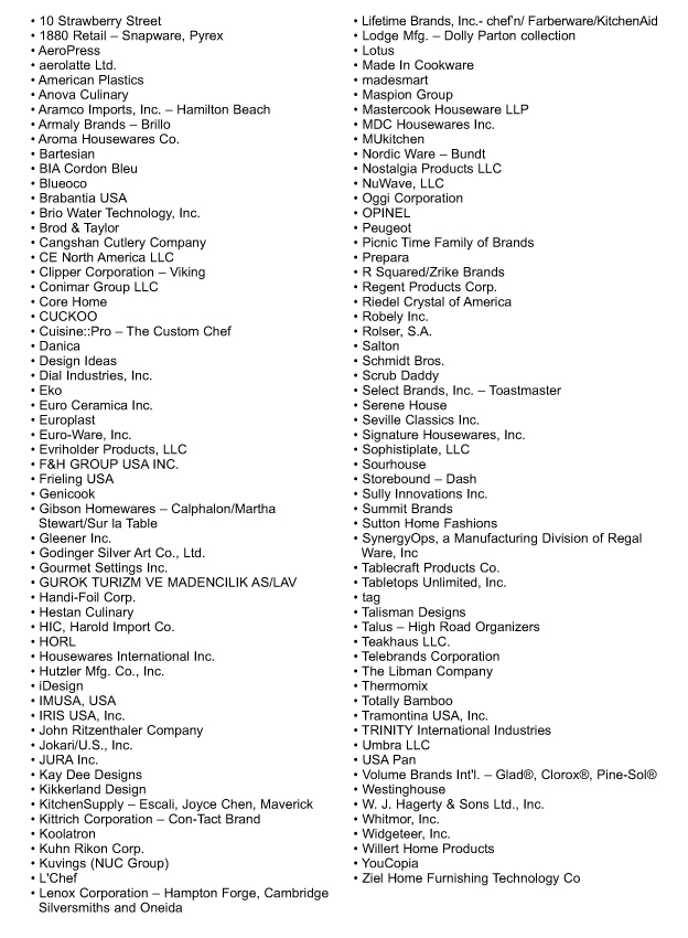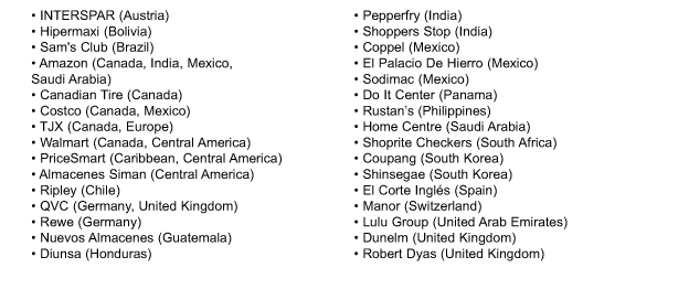 Una muestra de representantes internacionales registrados de empresas globales y compradores de minoristas líderes en el mercado incluye: